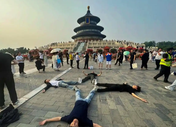 天坛游客自发展开“躺平式旅游” 年轻人旅游方式引发共鸣