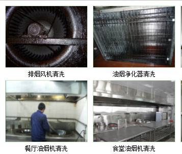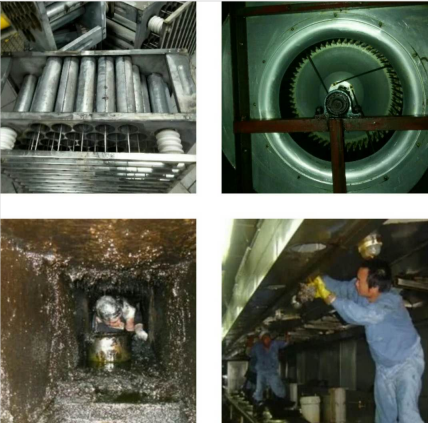 清洁包括烟罩表面、烟罩内面、横烟道内部。清洁重点部位是烟罩内侧、排风扇、油烟机上方是烟道内面。我们将重点对平行烟道内部进行彻底清洁。采用的主要方法主要是人员进入烟道内部进行清洁。