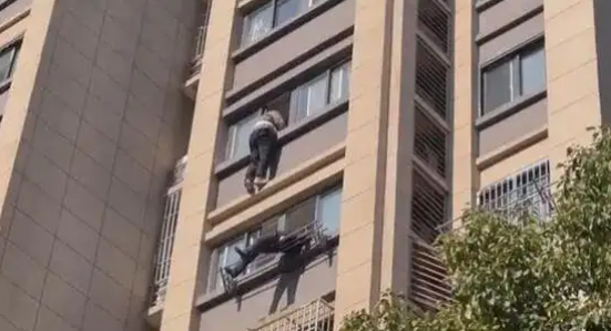 小区物业安保队长张伟接到消息后迅速赶到现场。由于老人家门无法打开,楼下窗户又装有防盗窗,张伟果断决定从8楼住户家中实施救援。时间紧迫,他来不及等待专业救援设备,便用消防水带简单绑在身上作为保护,由两名同事和8楼住户拉住绳索,自己则徒手沿窗台爬下。