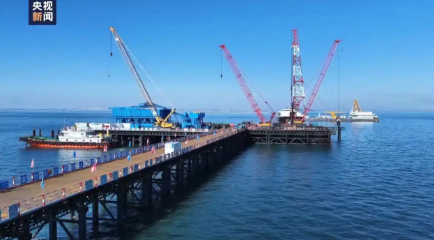 大连长海大桥主墩钢平台贯通 东北最大跨海桥迎关键进展