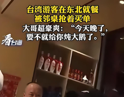 近日,一段视频在社交平台引发关注:几位台湾游客在黑龙江齐齐哈尔就餐时,被邻桌的东北大哥热情地“抢着买了单”。视频中,大哥豪爽地说:“要不是时间晚了,还给你们整个炖大鹅!”这一幕让台湾游客连连道谢,也引来网友纷纷点赞:“东北人就是实在!”“这热情劲儿,没谁了!”