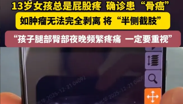 13岁少女臀痛就医竟确诊骨癌 肿瘤直径达20公分 医生:警惕“生长痛”背后的致命信号