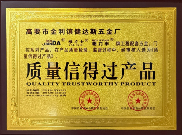 肇庆市高要区健达斯五金制品有限公司是一家专业从事门控五金制品研发、生产与销售的高新技术企业。公司主营地弹簧、半自动闭门器等系列产品,凭借创新的技术研发能力和完善的质量管理体系,在行业内确立了地位。公司引进了先进的生产设备和检测仪器,构建了现代化智能制造体系。通过ISO9001质量管理体系认证。产品远销欧美、东南亚等30多个国家和地区,与多家国际知名品牌建立了长期战略合作关系。多年来,公司始终坚持"质量立企、科技兴企"的发展理念,组建了专业的技术研发团队,拥有多项自主知识 查看全部 »